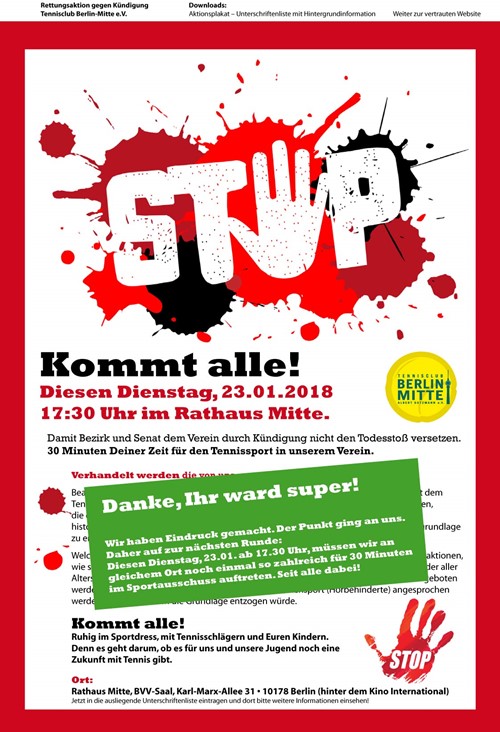 Am Dienstag, den 23. Januar soll erneut im Rathaus Berlin Mitte gegen die drohende, existenzbedrohende Kündigung des Geländes in der Melchiorstraße demonstiert werden.