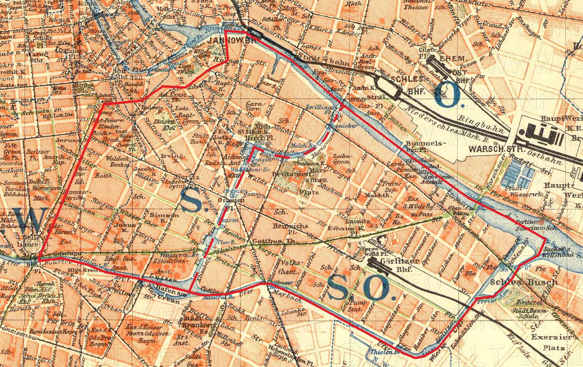 Kurioserweise war bereits in der Kaiserzeit die Luisenstadt verwaltungstechnisch durch zwei amtlichen Stadtteile in Ost und West geteilt: