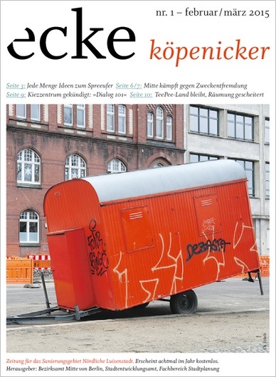 Sie lesen in der ersten ecke-Ausgabe des Jahres unter anderem: Mitte kämpft gegen Zweckentfremdung · Kiezzentrum gekündigt: „Dialog 101“ schließt · Spreeufer: Jede Menge Ideen und TeePee-Land bleibt, Räumung gescheitert.