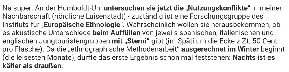 Und das meint Anwohner Lorenz Maroldt in seinem #Checkpoint Newsletter des Tagesspiegel: