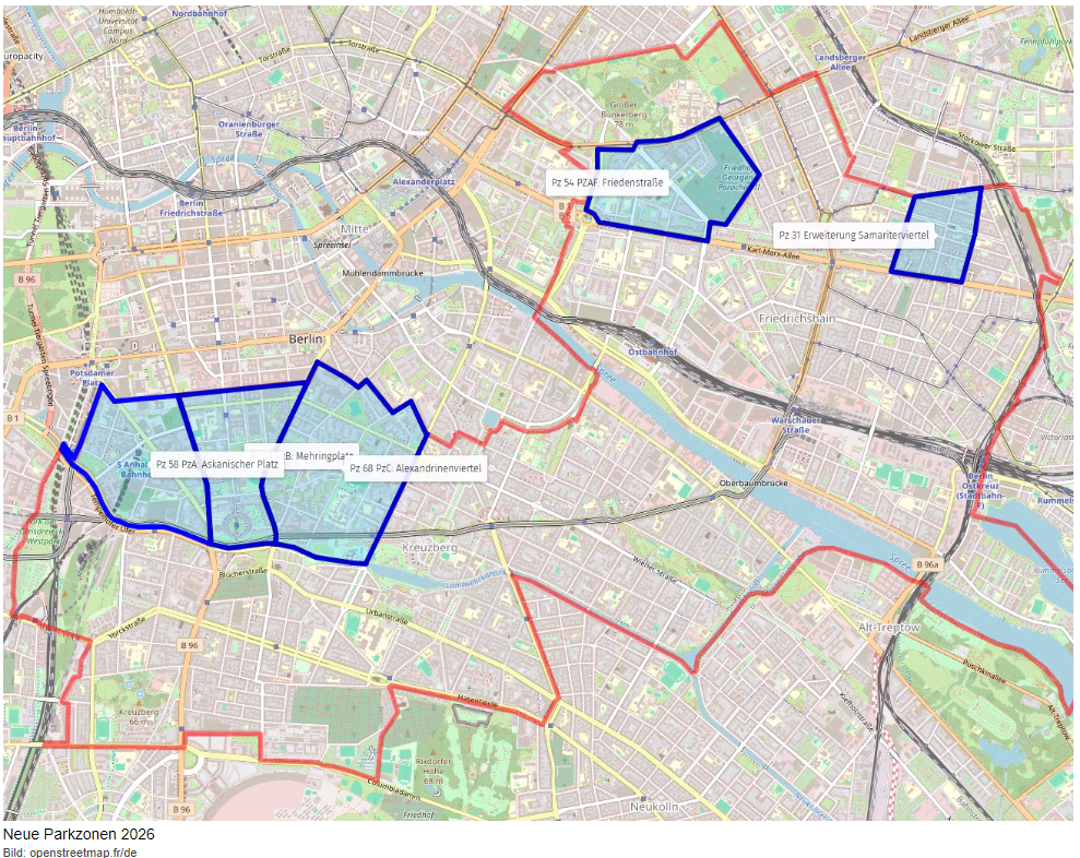 Für Anwohnende und Gewerbetreibende im Alexandrinenviertel (und der Friedenstraße) in der Luisenstadt Süd (Kreuzberg) stehen wichtige Änderungen bevor. Das Bezirksamt Friedrichshain-Kreuzberg hat angekündigt, die Parkraumbewirtschaftung weiter auszuweiten.
